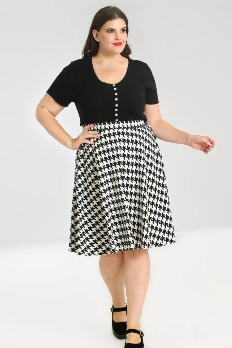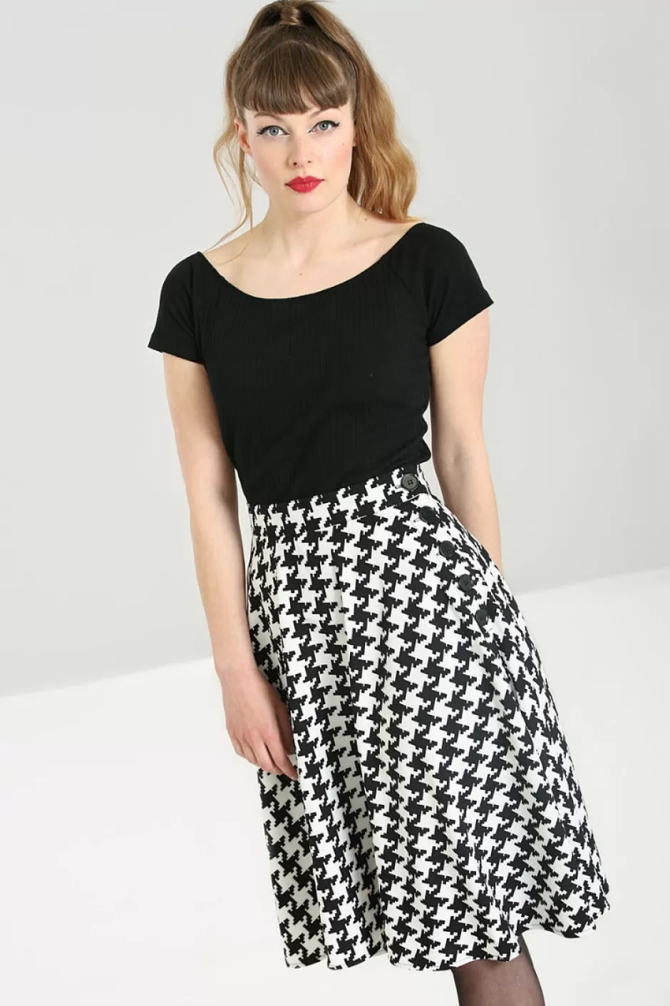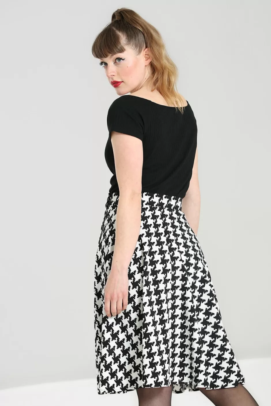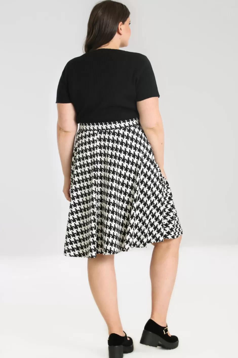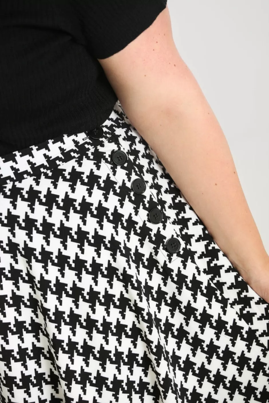 Make a statement this season in our monochrome Blake Skirt. Black and off-white houndstooth printed a-line mid skirt Fla…