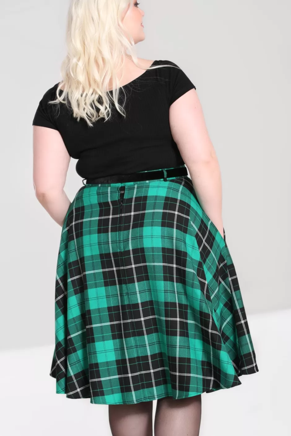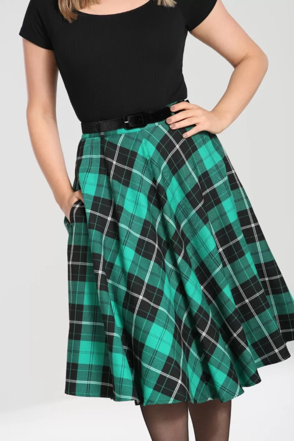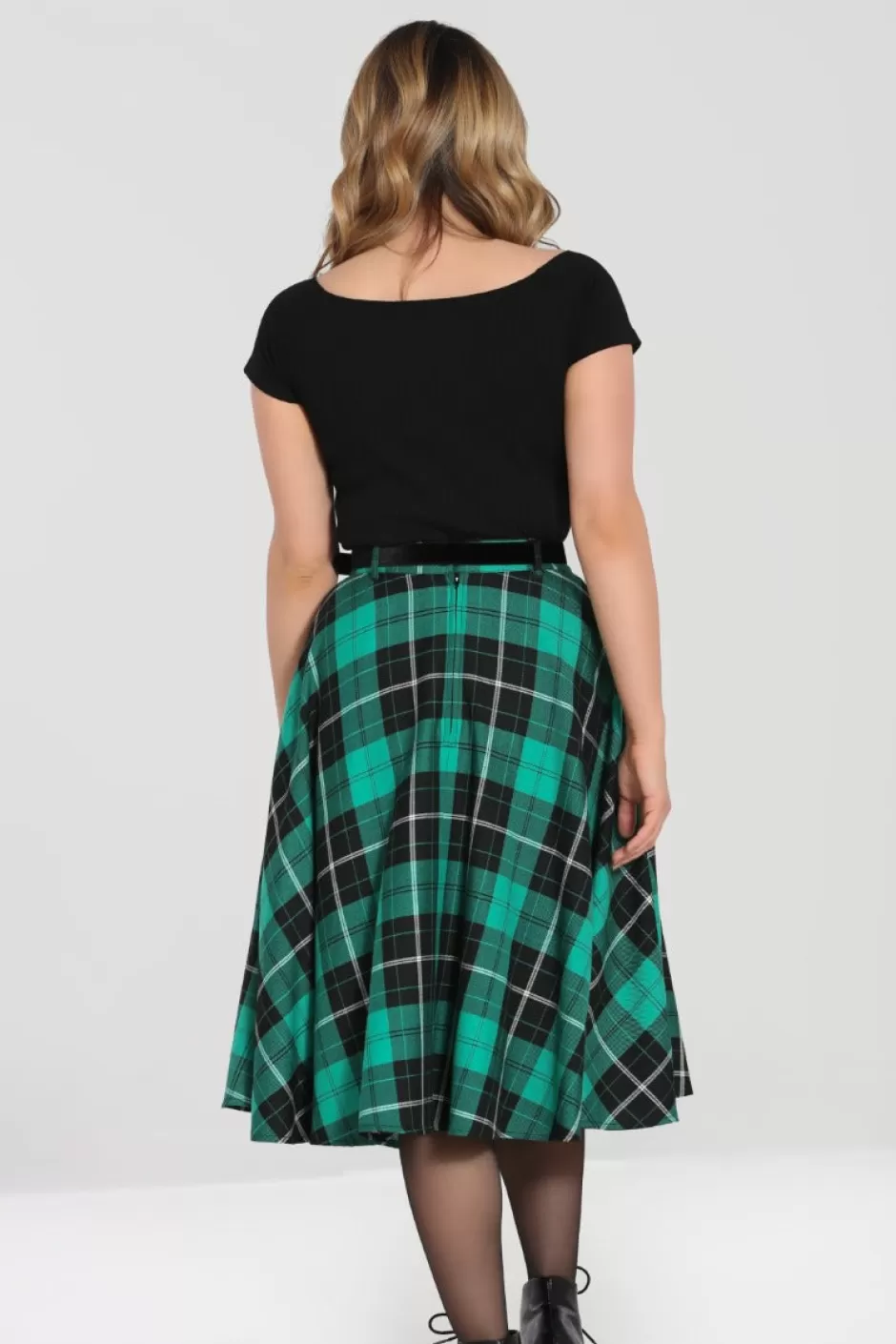 - Green and black tartan vintage style mid skirt