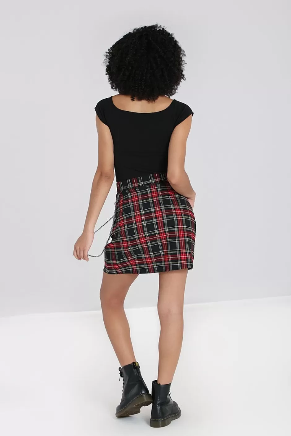 Red and black tartan mini skirtWaistband in self fabric with belt loops2 front pockets from the waistband2 detachable ch…