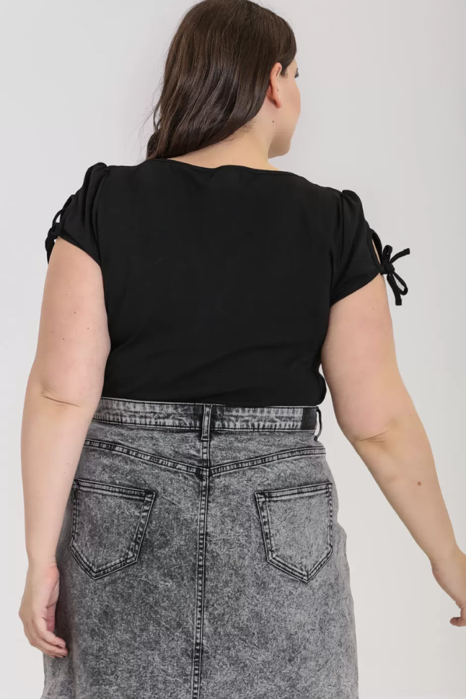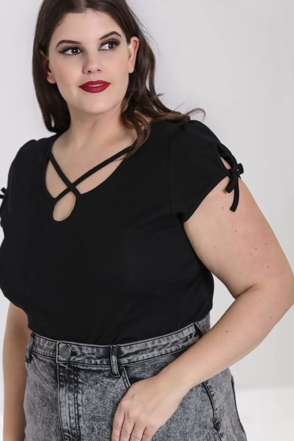 Our Cristina Top is the not-so-basic basic tee for our Dark Collection fans. Black stretchy jersey top with crossover de…